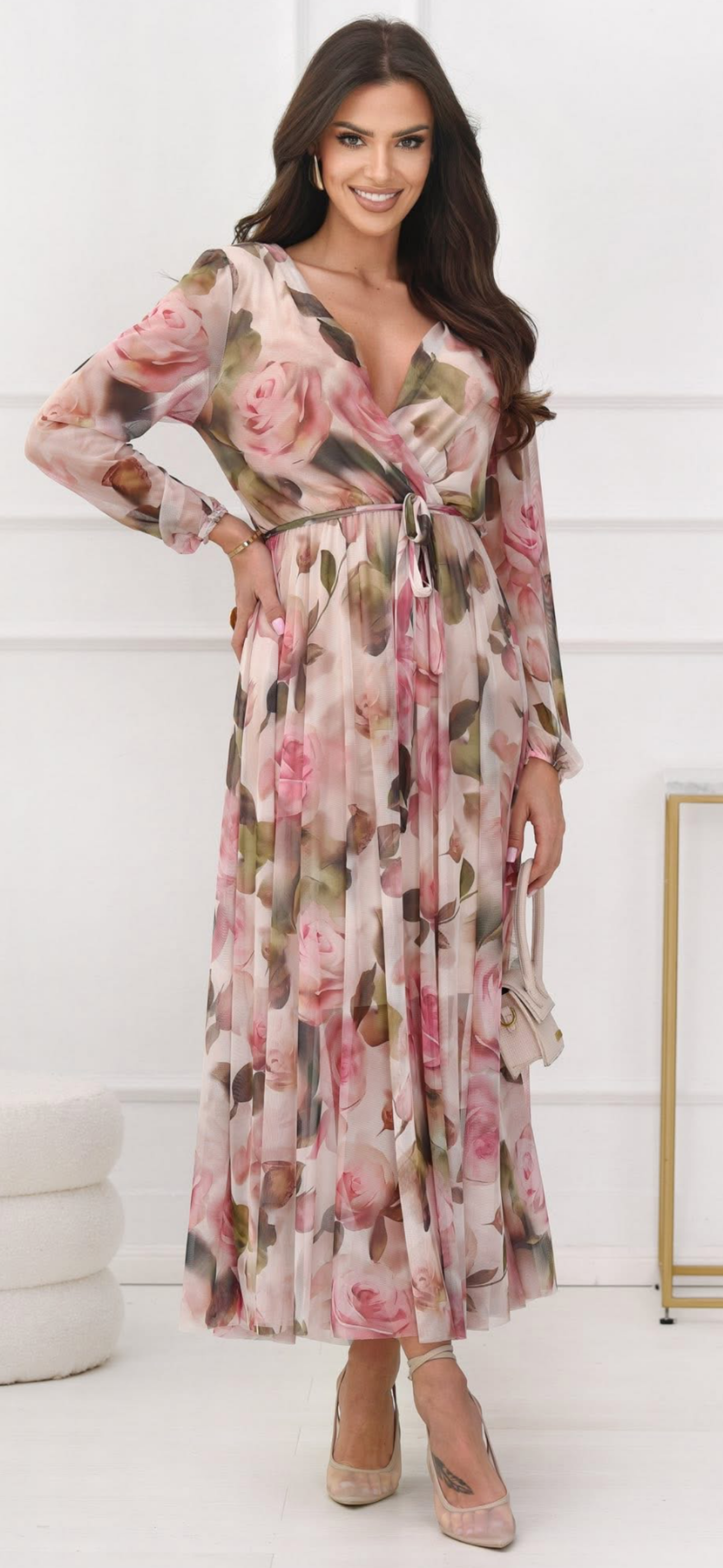 Color: Beige with floral pattern